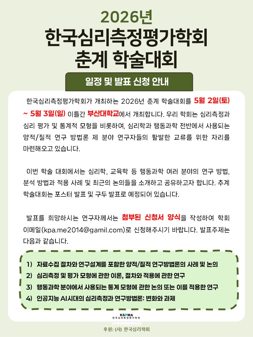 [분과학회 홍보] 한국심리측정평가학회 춘계학술대회